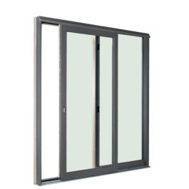 Enfin, c’est un coulissant sécurisé qui inclut une butée de fin de course ainsi qu’une crémone équipée de 4 points de fermeture et de 3 points d’ancrage sur le meneau central.