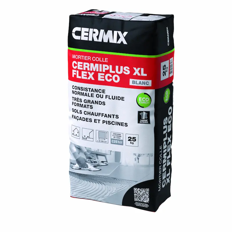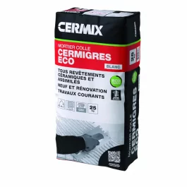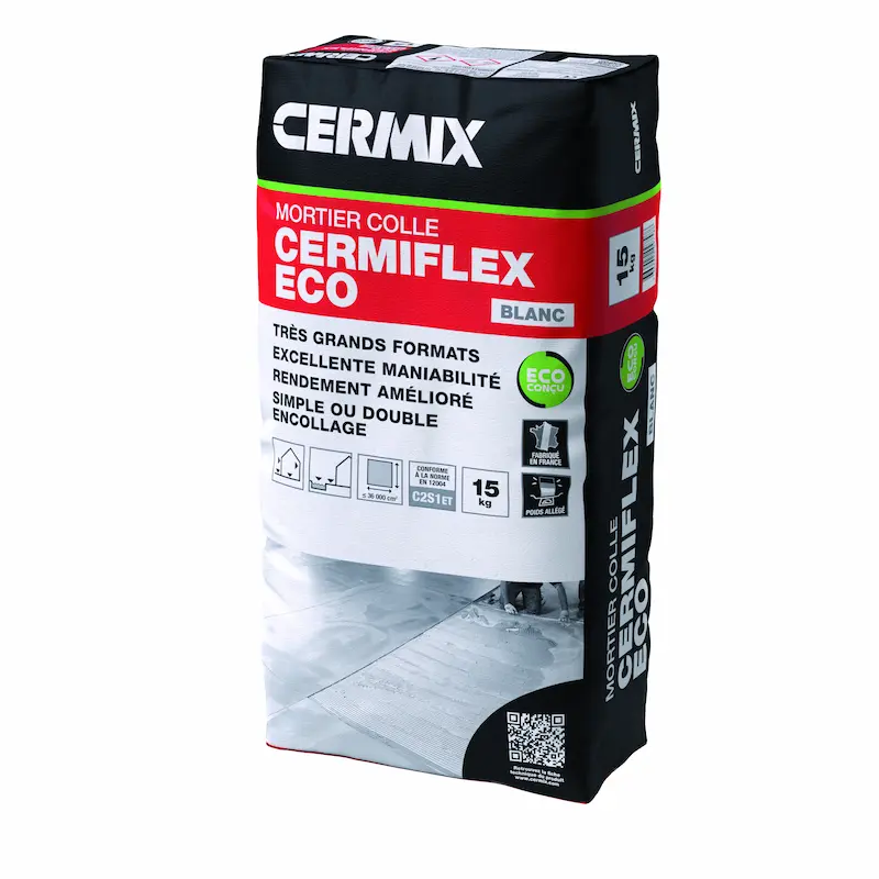 Les mortiers‑colles blancs CERMIGRÈS ÉCO, CERMIPLUS ÉCO, CERMIPLUS XL FLEX ÉCO et CERMIFLEX ÉCO bénéficient bien sûr de cette nouvelle présentation.