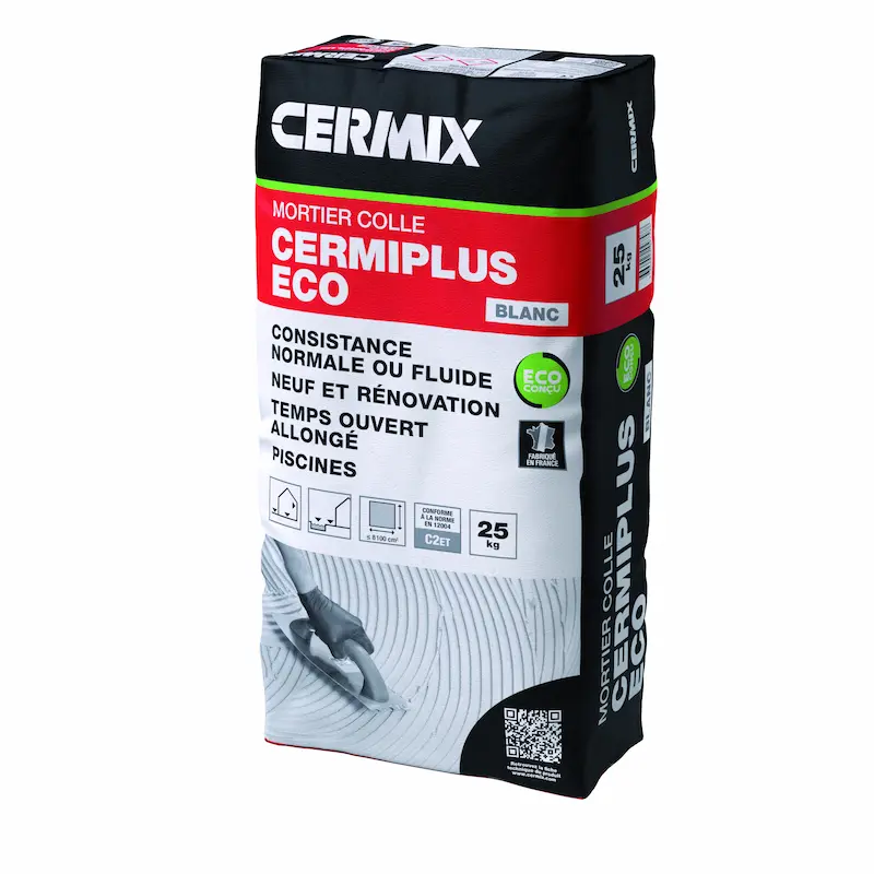 CERMIPLUS ÉCO, CERMIPLUS XL FLEX ÉCO et CERMIFLEX ÉCO bénéficient en outre d’un double taux de gachâge, permettant lorsqu’il est mélangé à consistance fluide de s’appliquer en simple encollage, offrant un gain de temps appréciable pour l’artisan.
