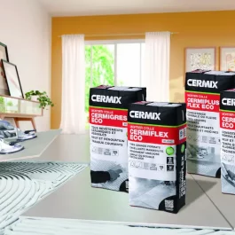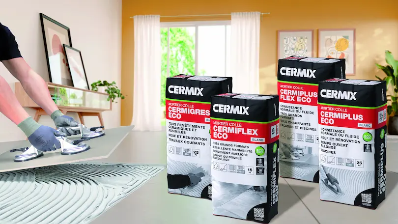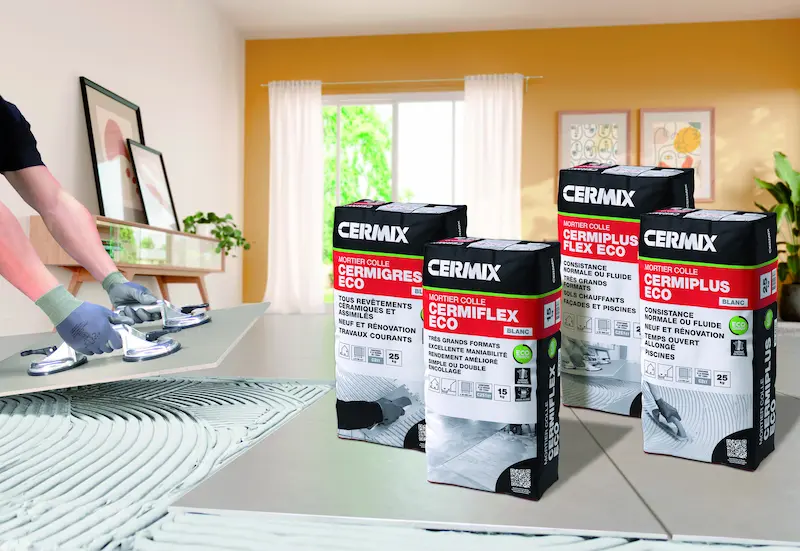 Acteur historique des mortiers-colles industriels, CERMIX s’attache à concevoir des solutions répondant aux enjeux de la construction de demain. En 2023, CERMIX lançait une gamme de produits éco-conçus, une offre bas carbone développée par la R&D de la marque dans un esprit d’innovation durable. Depuis, cette gamme n’a cessé de s’enrichir confirmant ainsi la volonté de la marque de participer à une construction durable, en préservant les ressources naturelles.