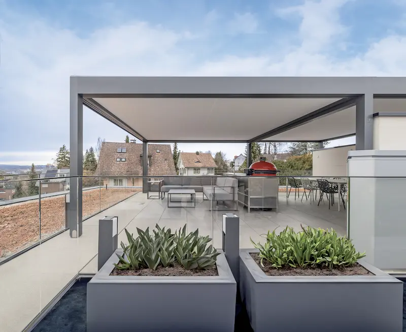 Grâce à son design sobre, Eclettica s’intègre naturellement à tous les styles d’architecture, du plus traditionnel au plus contemporain. Sa structure robuste et son toit fixe assurent une protection contre le soleil, la pluie et les salissures, garantissant une utilisation optimum tout au long de l’année.
