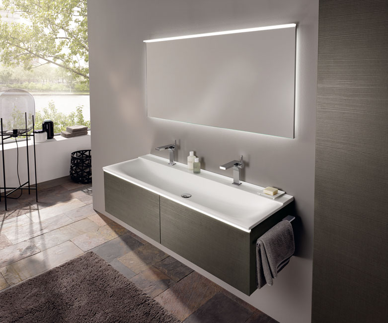 Les nouveaux meubles de la ligne Jam, associés aux accessoires Linéo 2 sont encore plus fonctionnels. Le volume de rangement répond parfaitement aux attentes actuelles, comme le souligne la hauteur des tiroirs : les parties hautes ont été pensées pour les cosmétiques et les petits objets, les parties basses pour les éléments plus volumineux.