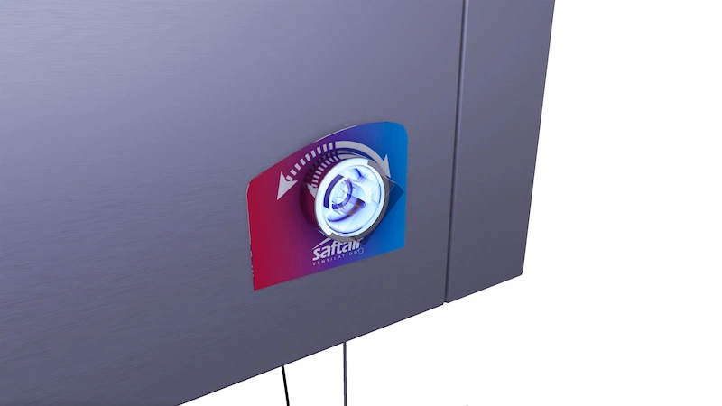 La hotte OTABREZ est équipée d’un système de brumisation performant : les flammèches sont conduites vers un capteur où elles sont éteintes grâce à la rampe interne de brumisation d’eau. Cet équipement fonctionne en mode continu ou séquentiel grâce à un bouton de réglage placé sur la face avant de la hotte.