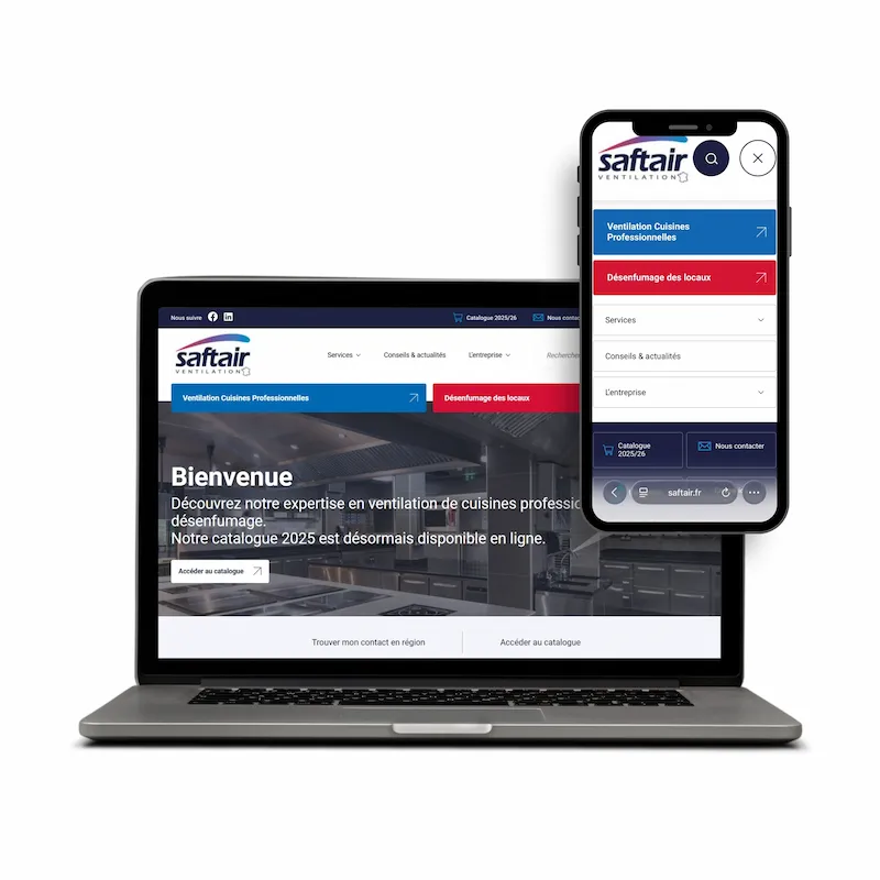 Le nouveau site Saftair Ventilation bénéficie d’une conception totalement responsive. Sur ordinateur ou sur smartphone, l’accès à l’ensemble des ressources est désormais parfaitement adapté à tous les écrans. Cette flexibilité permet de consulter les solutions techniques de la marque à tout moment, notamment sur chantier.