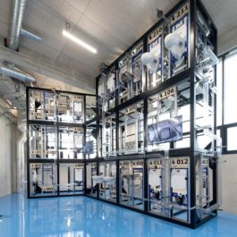 Il constitue un support pédagogique extrêmement pratique : la Tour hydraulique simule l’installation d’appareils sanitaires dans des logements de 3 étages, avec plusieurs modules de WC, douches et lavabos à chaque niveau. L’ensemble des canalisations qui relie ces modules sanitaires est réalisé avec des canalisations transparentes ce qui permet de suivre visuellement la circulation des fluides.
